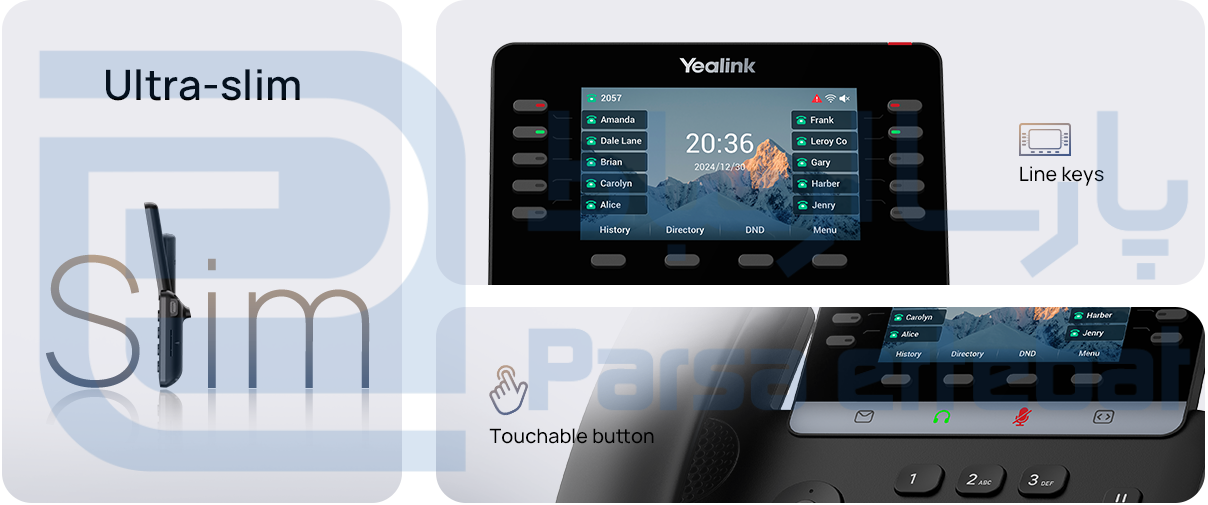 - کیفیت صدای HD: پشتیبانی از فناوری Yealink Optima HD Voice برای مکالمات شفاف و بدون نویز.