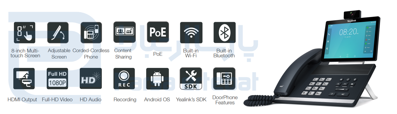 تلفن مدیریتی Yealink SIP-VP59 یک ویدیو فون حرفهای و قدرتمند است که برای اتاقهای مدیریت، سالنهای کنفرانس و کسبوکارهای مدرن طراحی شده است. این دستگاه با بهرهگیری از سیستمعامل Android و صفحه نمایش لمسی ۸ اینچی، تجربهای فراتر از یک تلفن رومیزی معمولی ارائه میدهد و امکان انجام تماسهای صوتی و تصویری با کیفیت Full HD را فراهم میسازد.